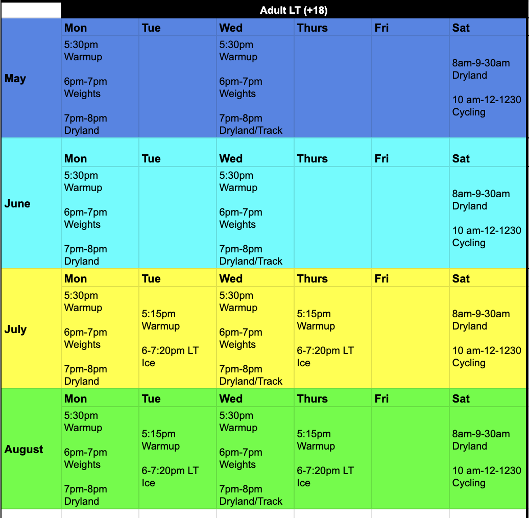 The Adult (18+) Long Track Summer Program will run from Monday, May 4, through Saturday, August 22. All sessions will be run at The Olympic Oval.
