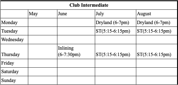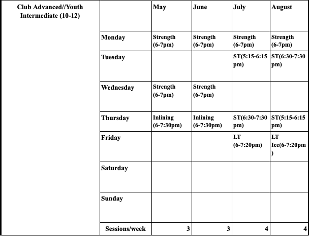 The Club Advanced/Youth Intermediate summer programming will run Monday, May 4th, through Friday, August 21st